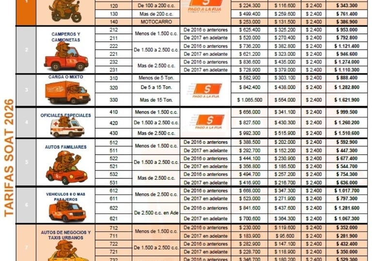 Todos los vehículos matriculados en Colombia, sean de servicio particular, de servicio público y motocicletas que transiten por las calles y carreteras colombianas.